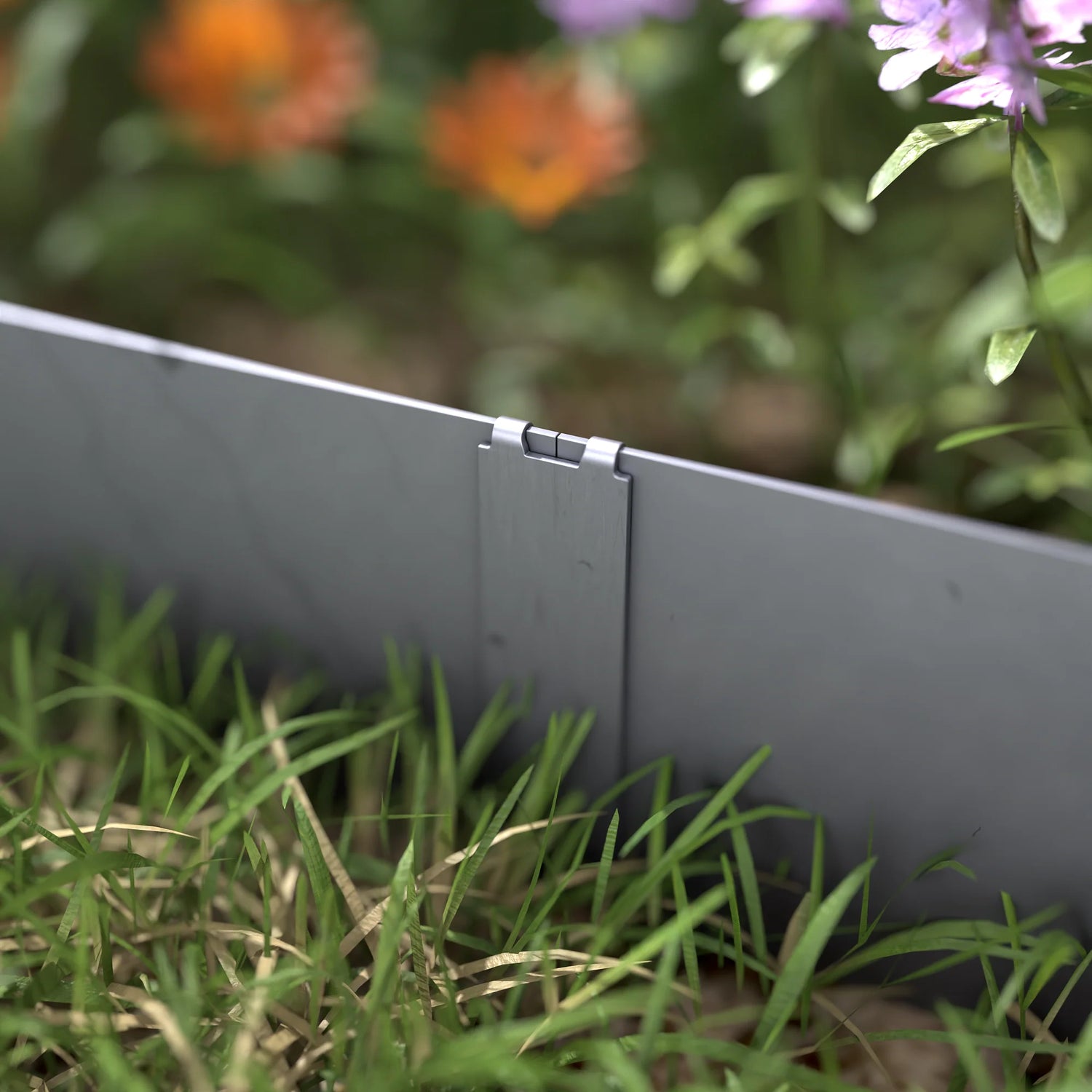 The locking connectors ship flat. To use, simply fold the two ends together and place over the two sections you want to join. Hammer in place ensuring the edges lock together. A corner connector is also included in the kit and shipped flat. To use, fold in half then bend the folded part to achieve the angle you want.